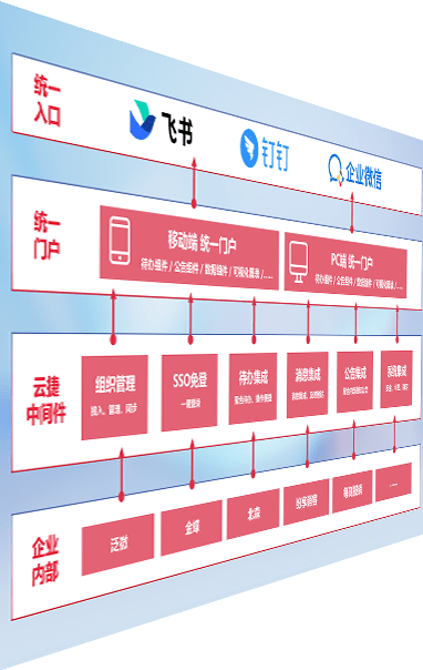对协作平台提供支持服务,,,支持企业应用与协作平台对接,,,,包含组织同步、、消息集成、、待办集成等。。。。支持目前主流的协作平台:钉钉、、企微和飞书。。。。